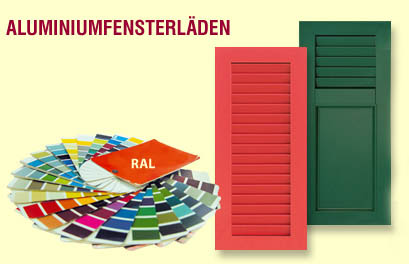 Unsere Fensterläden bestehen aus Strangpress-Alu-Profilen. Die Eckverbindungen sind mit einem massiven Alu-Eckwinkel verklebt und verkerbt. Die Läden werden als fertiges Element nach RAL pulverbeschichtet. Sonderfarben sind möglich.